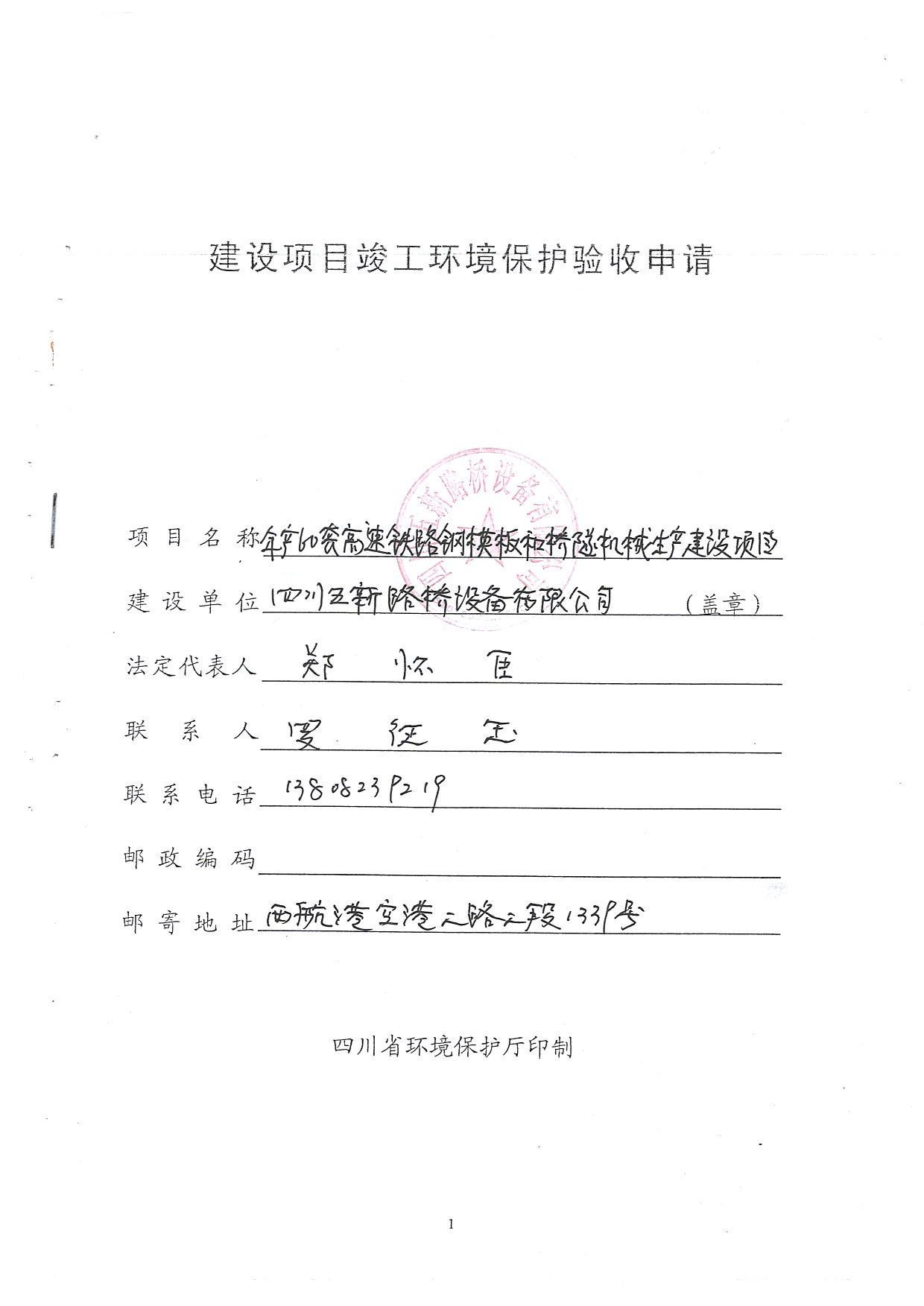 建設(shè)項(xiàng)目竣工環(huán)境保護(hù)驗(yàn)收申請(qǐng)